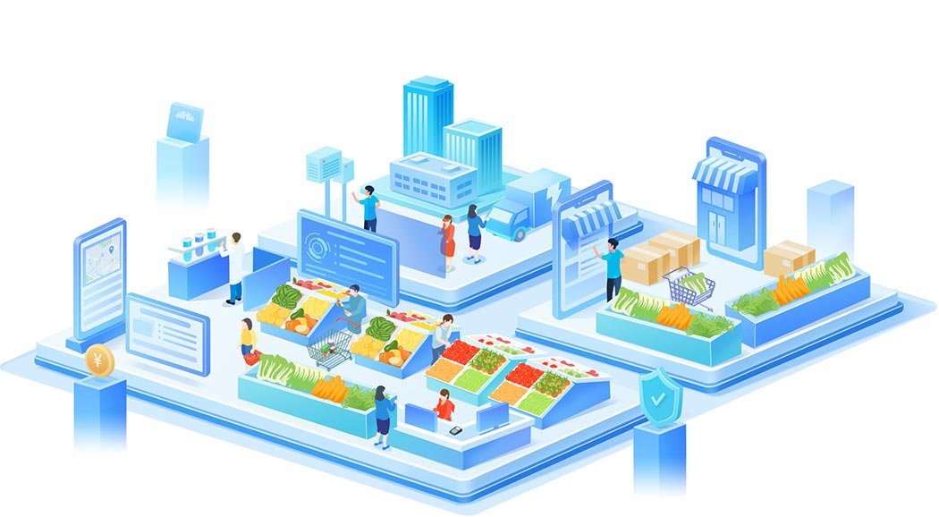 大連金馬衡器有限公司智慧農貿云服務平臺,集農產品生產管理系統(生產加工)、農產品集運(運輸)、物流中心(農貿市場)、智慧農貿系統、網上商城、農貿運營管理、智慧檢測監管、消費者追溯系統、大數據分析等系統開發及軟硬件定制于一體的智能農產品流通的貿易服務平臺。